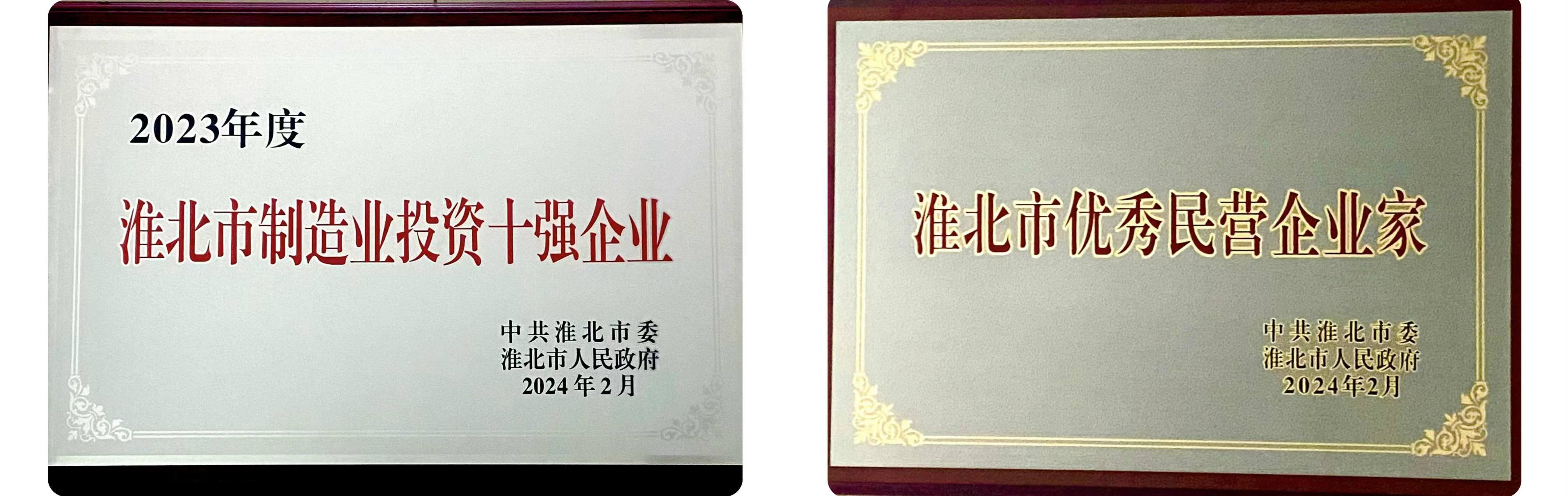 開春即有喜訊來,中旗集團董事長吳耀軍在2月19日淮北市委市政府召開的創(chuàng)建一流營商環(huán)境暨推進招商引資、工業(yè)經(jīng)濟和民營經(jīng)濟高質(zhì)量發(fā)展大會上,榮獲“淮北市優(yōu)秀民營企業(yè)家”稱號,集團下屬企業(yè)安徽寧億泰科技有限公司榮獲2023年度“淮北市制造業(yè)投資十強企業(yè)”獎牌。